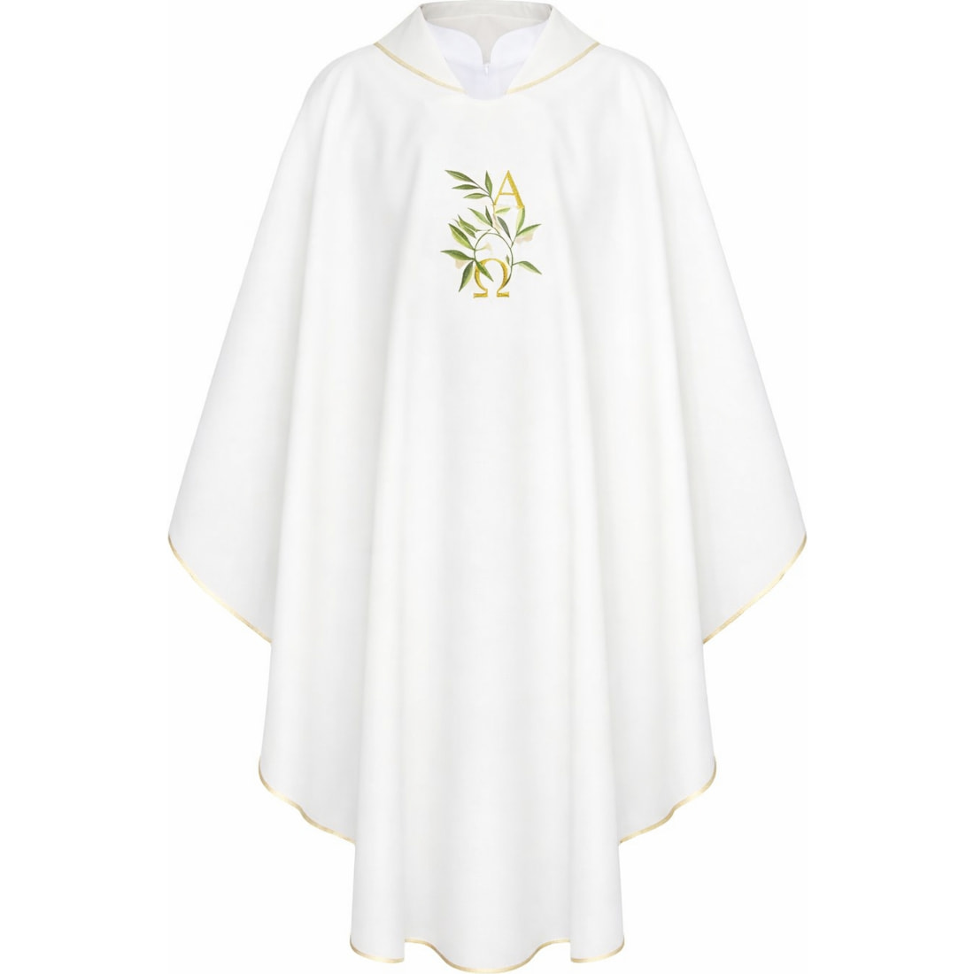 Casulla de poliéster com Alfa e Omega bordado branco