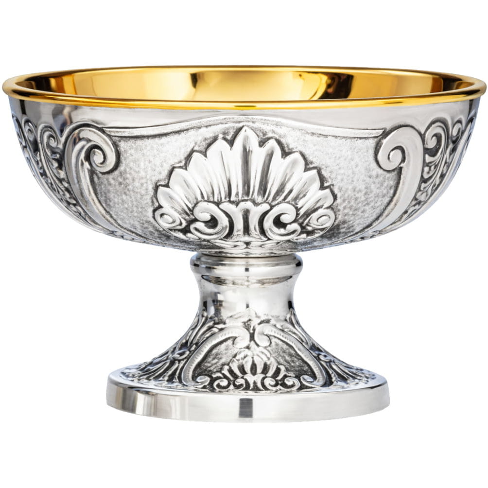 Patena de prata com elementos em relevo